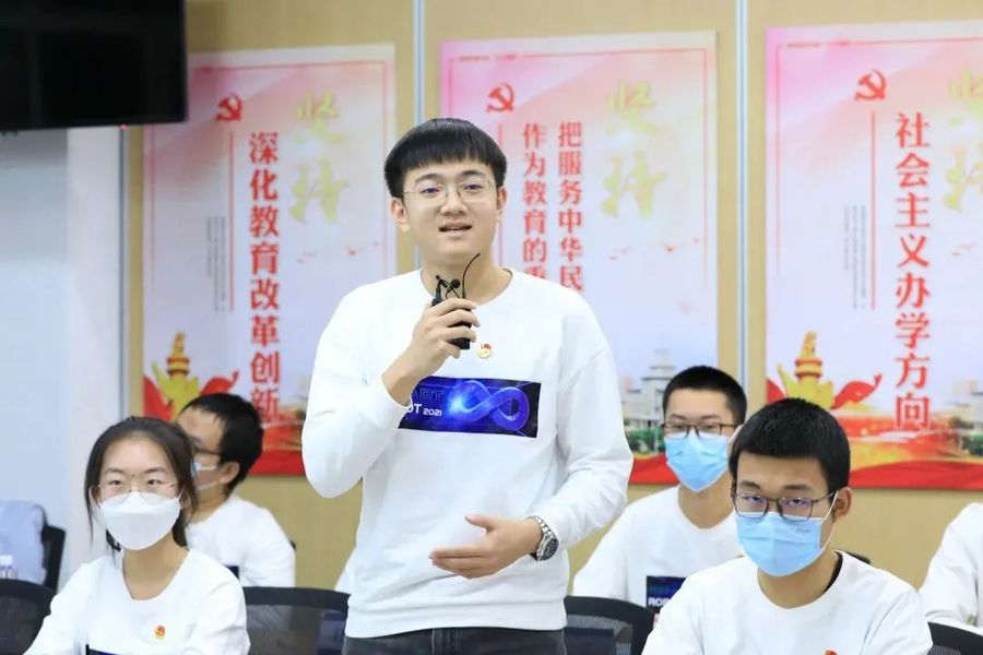 在学习贯彻习近平总书记在庆祝中国共产主义青年团成立100周年大会上的重要讲话精神座谈会上,我作为学生代表与校党委书记熊四皓分享了我带领班级荣获“基础学部优秀学风班标兵”和我荣幸地成为2021级第一批入党积极分子的喜悦。如今,我在党员发展对象培训结业考试中,以第一名的成绩获评优秀学员,顺利成为2021级本科生第一批党员发展对象。