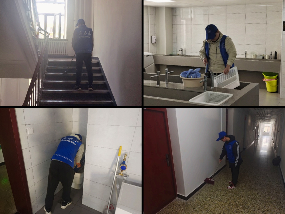 在领取统一发放的马甲后,志愿者们按计划来到各个岗位上。志愿者们手持扫帚和抹布,仔细清理着自己负责的工作区域。扫帚扫过,纸屑灰尘均被清理;抹布擦过,水印污点尽数去除。清理过后,二公寓焕然一新,路过的同学也纷纷称赞,志愿者们也为身上的志愿马甲与志愿帽倍感自豪。