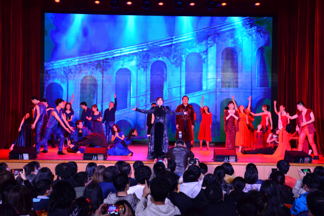 2023年4月30日晚,由太阳成集团tyc33455ccww未来之声音乐剧社排演的大型法语音乐剧《罗密欧与朱丽叶》在tyc33455cc太阳成集团主楼礼堂首次公演,并通过网络新媒体平台直播,实时在线观看人数达到40余万,此次活动被人民日报客户端报道。浏览量近16万。