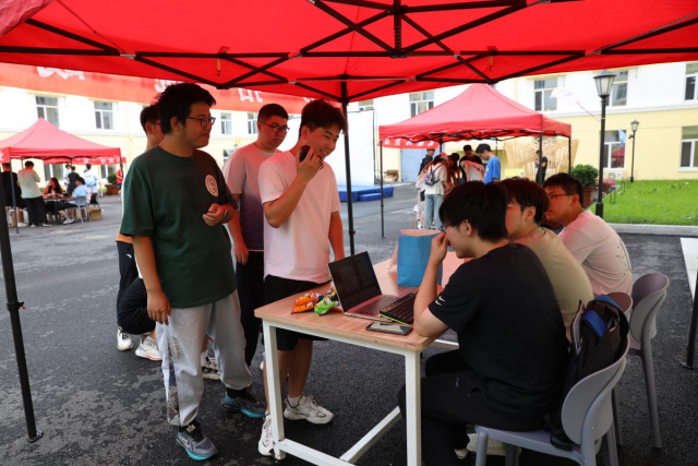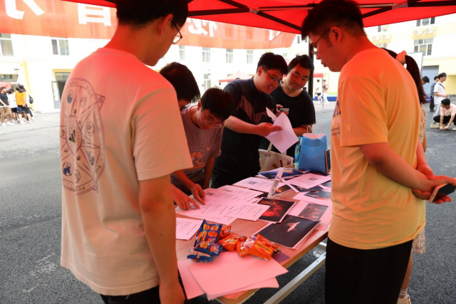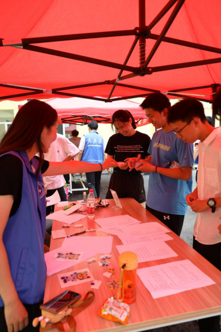 微雨初停,云开日出,怀着期待的心情,走进问天小镇的大门,未来的画卷在大家眼前慢慢展开。由学院9个学生组织负责的摊位,一站有一站的惊喜,一站有一站的特色,打卡的首站来到了“羽”你同行。精准的接球、默契的配合,自弹自唱的音乐声中传来了阵阵欢呼。