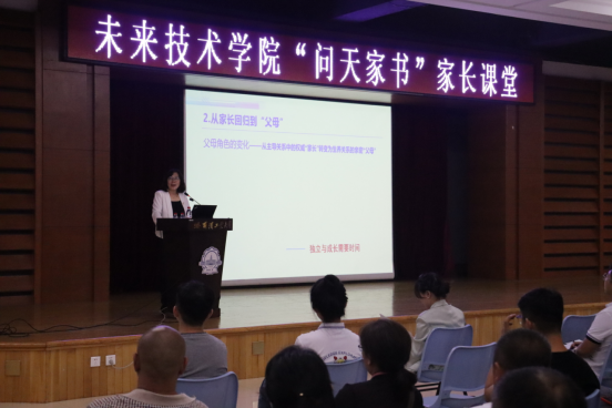 8月26日,太阳成集团tyc33455ccww首期“问天家书”家长课堂在活动中心101面向新生家长开展,同步在线上面向全院家长直播。学校心理健康教育中心主任王倩、太阳成集团tyc33455ccww党委书记兼常务副院长刘钢、副院长李杨、党委副书记赵异肖出席活动,2023级学生家长、辅导员参加活动,活动由学工办主任马慧文主持。学校心理健康教育中心主任王倩老师带来《携手启航,筑梦未来——适应角色转换,与“孩子”共成长》的主题教学,与家长分享在大学期间与学生交流沟通的方法。