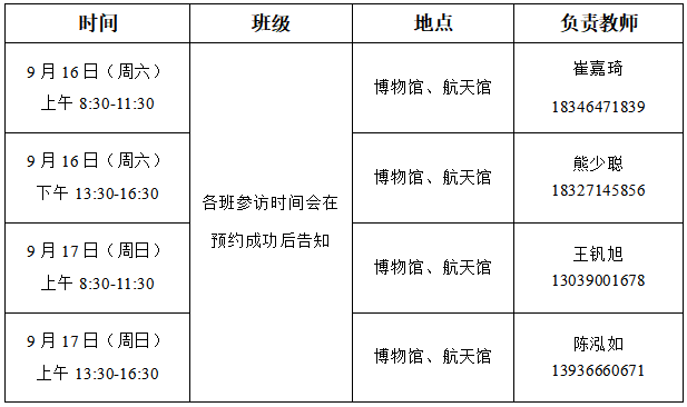 各班明确一位同学,负责班级同学的签到,参访过程维持班级秩序,并与当时的负责教师保持联系。若在参观过程中出现任何突发状况,请联系对应负责教师。