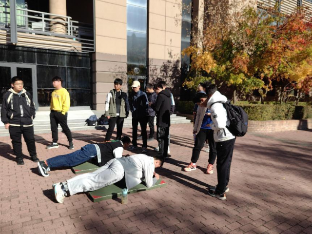 本次活动共设置了七个身体素质挑战项目——跳绳、高抬腿、俯卧撑、双摇跳绳、平板支撑、仰卧起坐和够向未来。这些简单易行而带有挑战性的运动项目让同学们以饱满的热情积极地参与进来。火热的运动气氛温暖了秋日的寒冷。同学们在场地间穿梭,参与各类挑战项目,并在学生工作者和志愿者同学的指引和见证下完成一个个挑战。随着最后一位同学的项目结束,身体素质挑战活动也正式宣告结束。