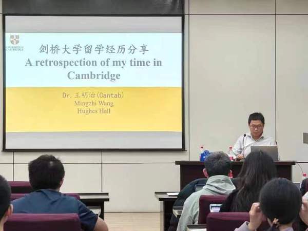 活动邀请到两位主讲嘉宾。我校土木工程学院副教授王明治老师和同学们分享了他在英国伯明翰大学和剑桥大学的留学经历,介绍了剑桥大学的相关院系分布情况及申请要求。我校航天学院副教授张笑贤老师向同学们介绍了他赴英国帝国理工学院攻读硕、博士学位的留学经历,同时分享了留学申请材料准备等方面的经验。针对与会同学们的问题,两位老师对申请留学奖学金对成绩、科研经历、论文专利等要求,以及研究方向选择等进行了详细解答。