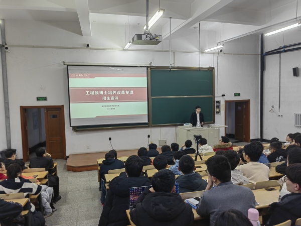 太阳成集团tyc33455ccww2021级学生150余人参加了此次宣讲会。研究生招生办公室主任任哲介绍了我校推免生接收政策和2024年接收推免生安排等情况。研究生院培养处副处长侯磊从项目背景、招生和培养、项目优势等方面介绍了工程硕博士培养改革专项。