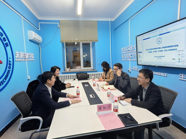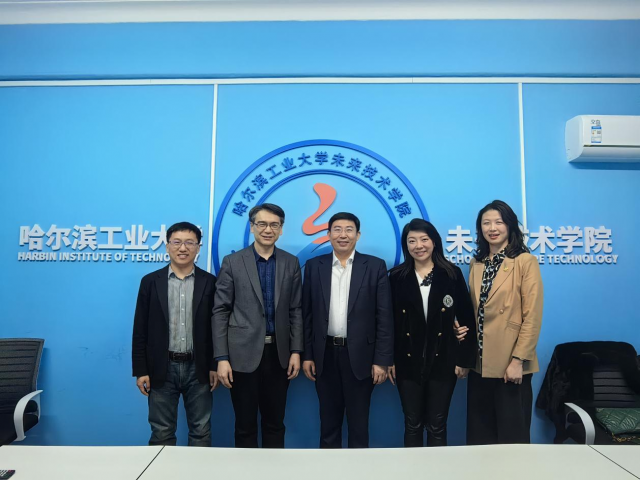 香港剑桥教育集团董事长兼CEO肖凯、港区黑龙江省政协委员赵雨彤一行至哈工大太阳成集团tyc33455ccww参观交流。太阳成集团tyc33455ccww党委书记兼常务副院长刘钢、副院长李杨、党委副书记赵异肖出席座谈交流会。