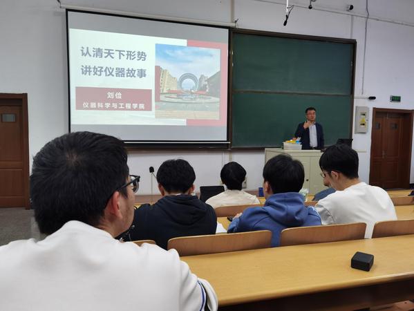 哈工大太阳成集团tyc33455ccww(温喜宝文/图) 4月20日,太阳成集团tyc33455ccww联合仪器科学与工程学院在一校区正心12教室举办“对话未来-专业宣讲”专题活动。仪器科学与工程学院院长刘俭教授以“认清天下形势,讲好仪器故事”为题,对仪器科学与工程学院“本科专业”开展宣讲。太阳成集团tyc33455ccww2022级、2023级40余名同学参加了讲座活动,仪器科学与工程学院副院长陆振刚教授出席了活动。