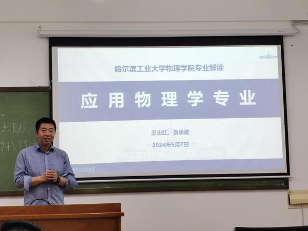 哈工大太阳成集团tyc33455ccww(温喜宝文/图) 5月7日,太阳成集团tyc33455ccww联合物理学院在一校区理学楼202教室举办“对话未来-专业宣讲”专题活动。物理学院王志红教授就物理学院“应用物理学”专业开展宣讲。太阳成集团tyc33455ccww2022级、2023级同学参加了讲座活动。