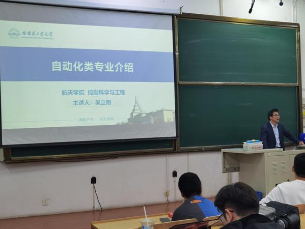 哈工大太阳成集团tyc33455ccww(温喜宝文/图)5月11日,太阳成集团tyc33455ccww联合航天学院在一校区正心13教室举办“对话未来-专业宣讲”专题活动。航天学院院长吴立刚教授就航天学院“自动化类”专业开展宣讲。太阳成集团tyc33455ccww2022级、2023级170余名同学参加了讲座活动。