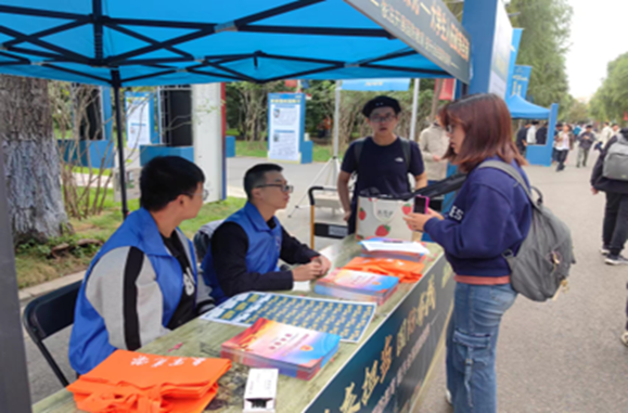 活动中,志愿者们在各个摊位活动中开展志愿服务,通过发放宣传资料、疏散引导、国防主题特色活动教学,协助社团组织完成现场工作,生动地向同学们普及国防知识。志愿者们以饱满的热情加入到志愿服务当中,尽职尽责地完成自己的工作,展现了问天学子“青春担当、国防有我”的责任感和爱国之情。志愿者们展现出高效的学习能力、临场随机应变能力,组成一支高质量的志愿服务队伍,以一丝不苟的工作态度与奋发有为的精神面貌,让“问天志愿者”成为活动现场可靠的“排忧解难人”,一抹“问天蓝”为国防教育嘉年华活动增光添彩,受到主办单位一致好评。
