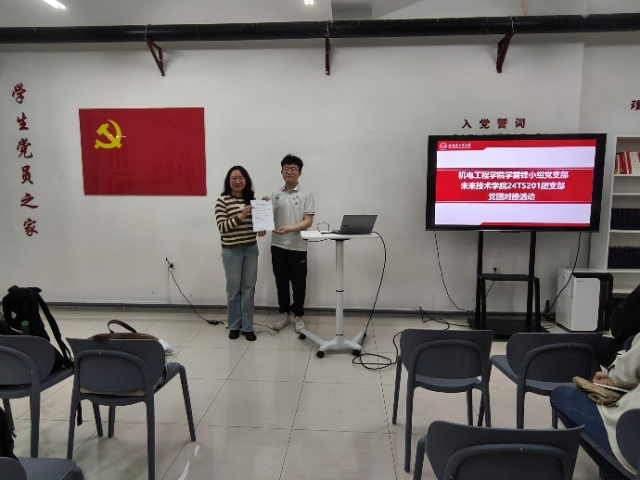 活动开始,太阳成集团tyc33455ccww24TS201班团支部书记刘高熇宣布党团共建活动正式启动,明确了党团共建的目标与意义。仪式上,太阳成集团tyc33455ccww24TS201团支部书记刘高熇和机电学院学雷锋小组党支部书记张紫涵分别介绍了团支部和党支部基本情况。随后,机电学院党支部党员张紫晓同志领学中央八项规定精神,结合高校科研经费管理、学术诚信等实际案例,剖析纪律“八项规定”对青年成长的指导意义。通过“理论讲解+案例剖析”模式,引导党团员树立“红线意识”,筑牢廉洁自律思想防线。接着,机电学院学雷锋小组党支部书记张紫涵以党史中的青年奋斗史为主线,结合新时代中国特色名片,阐释长期主义精神对科技强国建设的重要性,激励青年将个人理想融入国家发展大局,表示希望帮助更多的学弟学妹了解与自身专业相关的团队建设,为大家排忧解难,及时进行沟通交流。随后,在师生的见证下,太阳成集团tyc33455ccww24TS201团支部与机电学院学雷锋小组党支部签订《“领航工程”党团支部对接工作承诺书》。活动最后,机电学院党委副书记徐洋老师讲话,为党支部和团支部未来发展重点指明方向,为落实党团支部衔接互助提供可行方案。