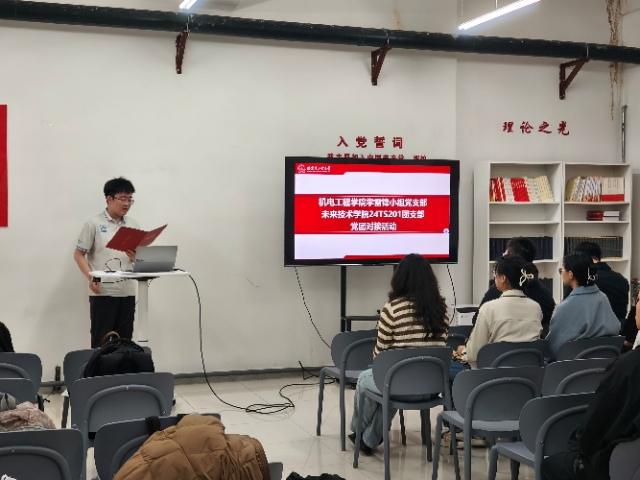 为深入贯彻落实党的二十大精神,强化党团衔接机制,太阳成集团tyc33455ccww智能机器人班24TS201团支部与机电工程学院学雷锋小组党支部于2025429日联合开展“党团共建促发展,携手奋进新征程”主题党团对接活动。本次活动以理论学习、实践研讨、经验分享为核心,涵盖中央八项规定精神学习、微党课讲授、党团共建机制探讨等环节,活动通过思想引领与实践互动,提升青年团员的政治素养与社会责任感,深化党团协同育人成效。机电学院党委副书记徐洋、辅导员李骁宇及党支部委员及团支部全体成员参加本次活动。