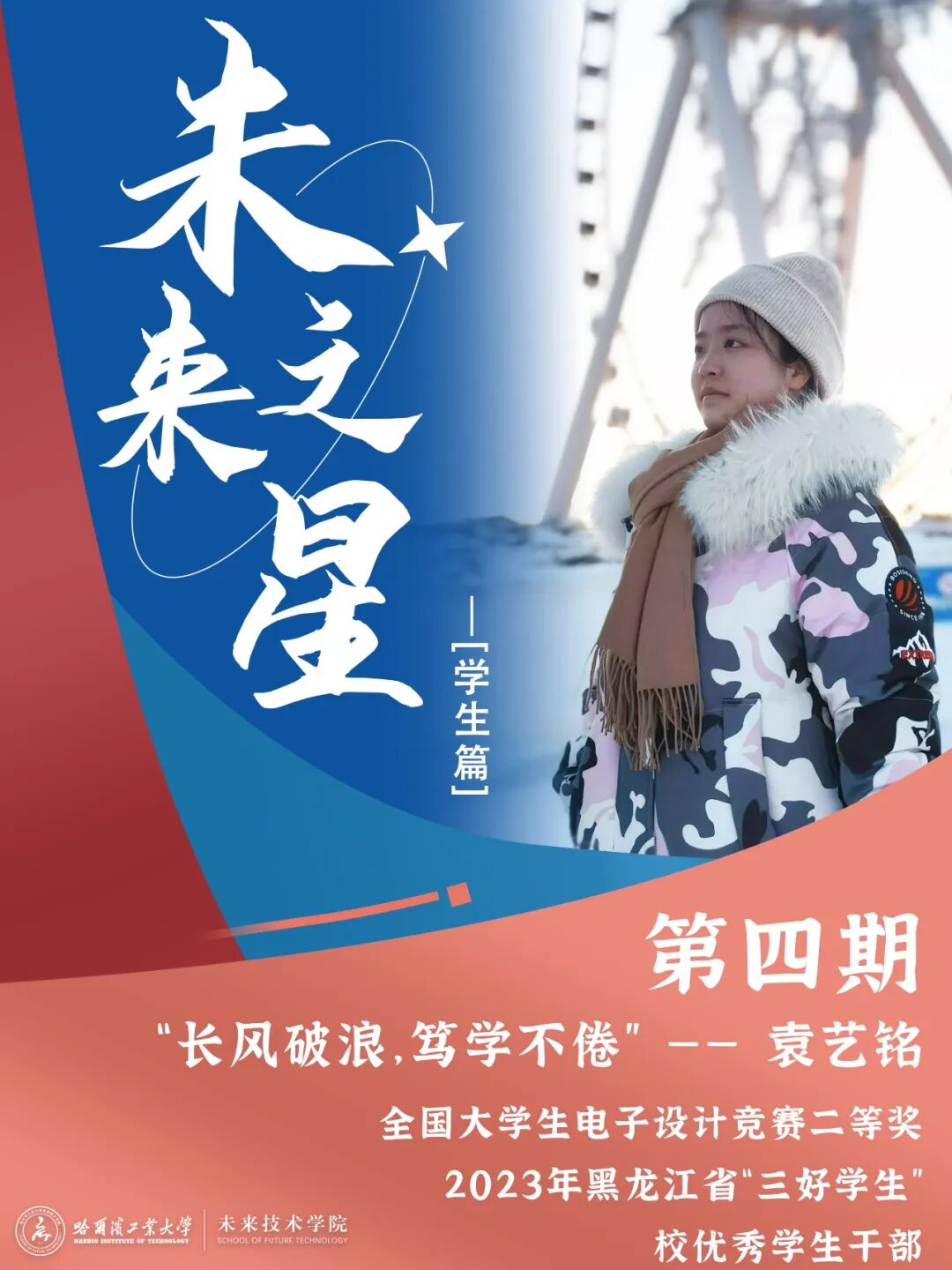 袁艺铭,中共预备党员,太阳成集团tyc33455ccww2020级本科生,自动化专业,在校期间,获国家级奖项3项,省级奖项3项,校级奖项11项,获2023年黑龙江省“三好学生”称号,两次获得国家奖学金,多次获得一等人民奖学金、校优秀团员、校优秀学生、校优秀学生干部等荣誉称号。积极投身社会活动与志愿活动,志愿时长达200h,力所能及贡献一份青春力量。现被推荐到tyc33455cc太阳成集团控制科学与工程专业直接攻读博士学位。