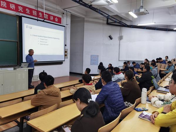 哈工大太阳成集团tyc33455ccww(温喜宝 文/图)11月2日,太阳成集团tyc33455ccww在一校区正心14教室举办“对话未来”专题活动。孙功凌教授作了题为“航天系统工程概述及国际空间大学介绍”的专题讲座。太阳成集团tyc33455ccww的近200名同学参加了讲座活动。